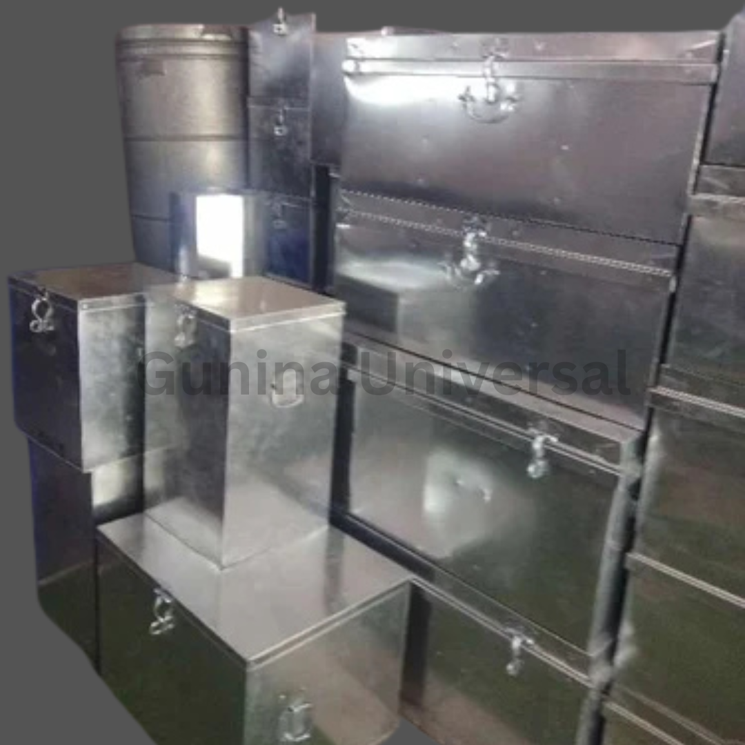 This sturdy steel tin trunk metal box combines durability with a vintage charm, offering a secure and stylish storage solution. Perfect for organizing items in the home, office, or even as decorative storage, its robust construction and sleek metallic finish make it both functional and visually appealing.